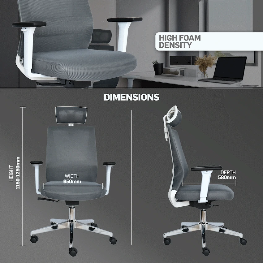 High Back Ergonomic Design: Provides full upper back and neck support for long-lasting comfort and proper posture.