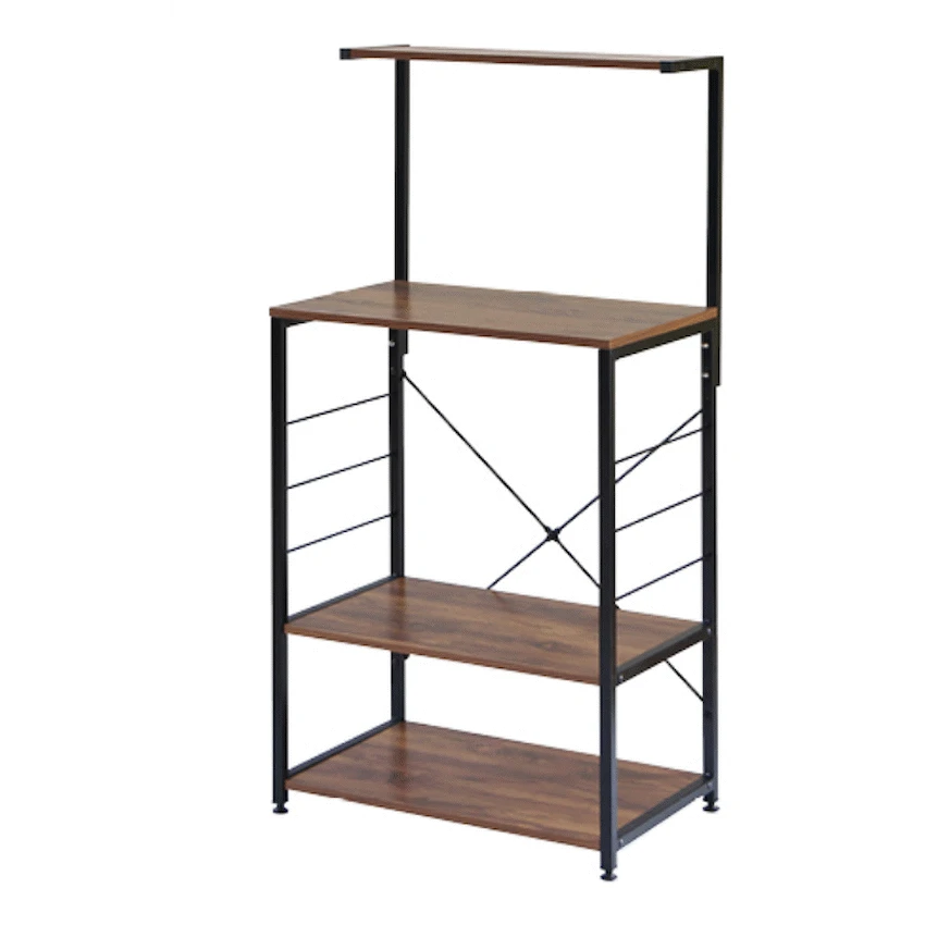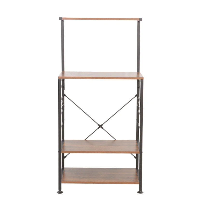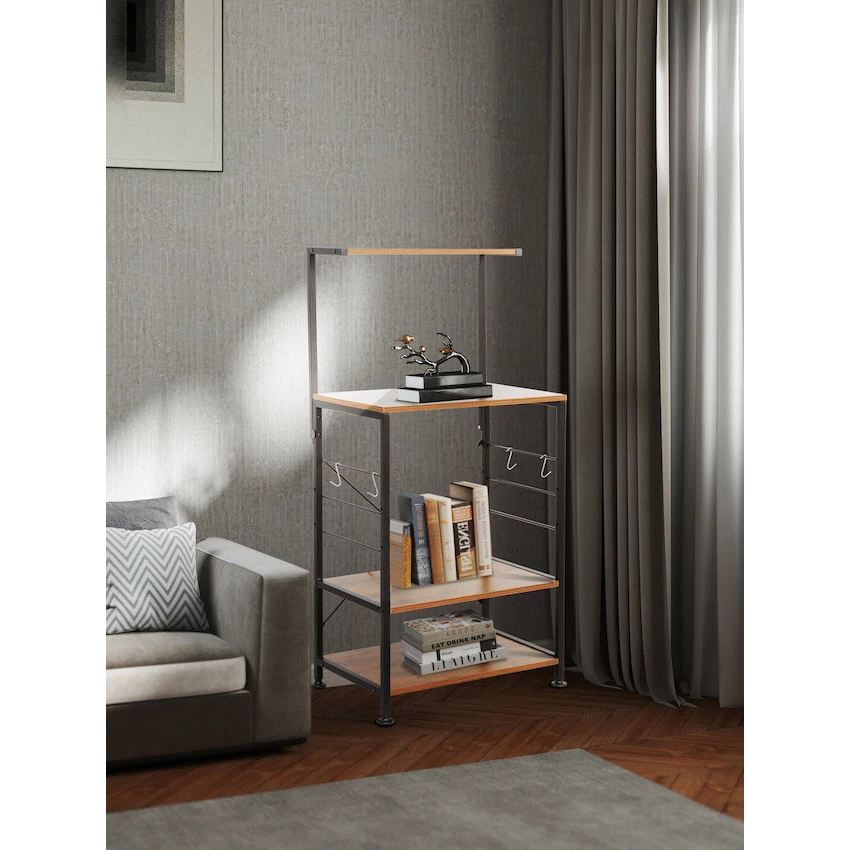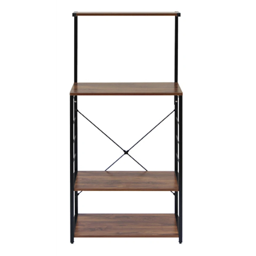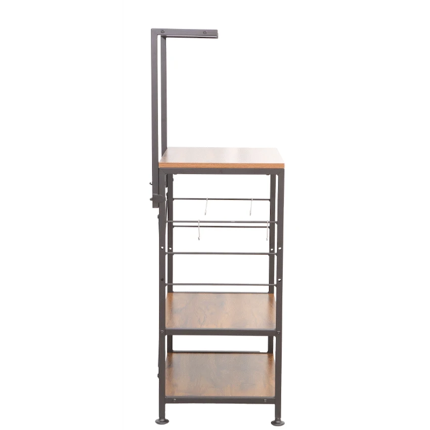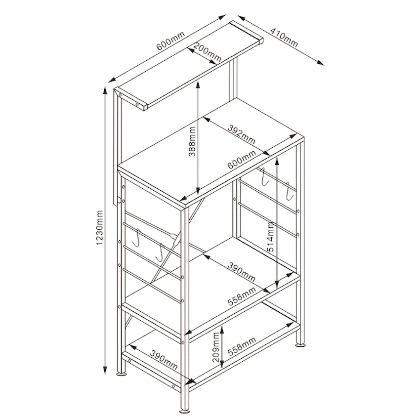 Everfurn Boston Kitchen Unit/Rack With Storage, 4 Tiers Coffee Bar Station with melamine lamination 2x Spacious tiers provide ample storage, helping to keep your space organized. 1x Work bench tiers, allows you to comfortable work while standing. 1x Display shelf, allows for more overhead storage space. Compact design makes the desk ideal for smaller rooms, while maximizing functionality. Adjustable feet, allow for leveling the desk on uneven surfaces, ensuring stability and protecting floors. Rust-and scratch resistant powder coated steel legs. Water-and scratch resistant durable melamine lamination. PVC-edging protects the desk from impact. 10kg Weight capacity per shelf. 1 Year Warranty.