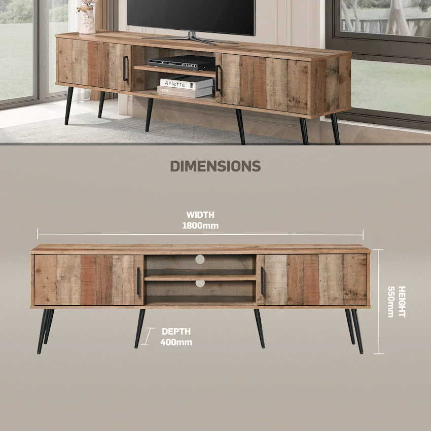 x6 Steel Legs, Ensures That The TV Stand Is Securely Supported.